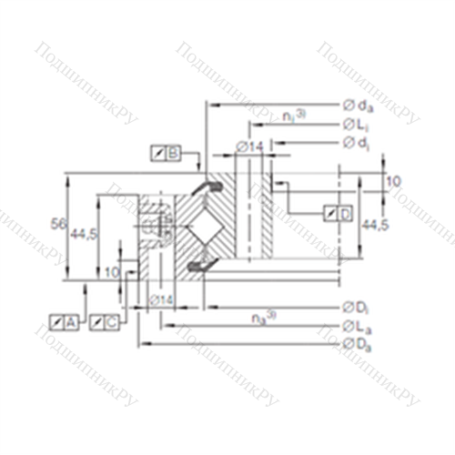 Чем характеризуется Подшипник роликовый опорно-поворотный XSU 14 0414?