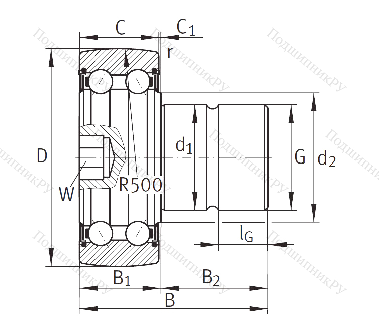Конструкционное решение Подшипник KR 5203 2RS по многим пунктам совпадает с игольчатыми роликоподшипниками. Направляющие тела качения обладают безэксцентриковой втулкой. Внешнее кольцо – массивное, способное к восприятию высоких нагрузок радиальной направленности, включая ударные темпы службы, сопровождающиеся малыми изгибами и деформациями. Снаружи данное кольцо, в большинстве случаев, имеет форму конуса. Внутренняя шина отсутствует, а ее роль играет стержень с установочной винтовой резьбой, что в значительной степени упрощает и ускоряет процесс монтажа. На стержневой головке находится фланец с напрессованным кольцом.