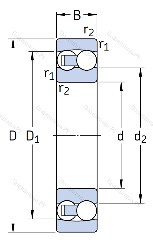 Конструкции этого типа, производящиеся фирмами FAG, KOYO, NSK, SKF, SNR, имеют два ряда шарикоподшипников, внешнюю выпуклую шину и внутреннюю обойму, в которой находится монтажное цилиндрическое отверстие. Воспринимают радиальные и осевые вектора приложения, включая двустороннюю нагрузку по оси (она не должна превышать 20% от лучевой).