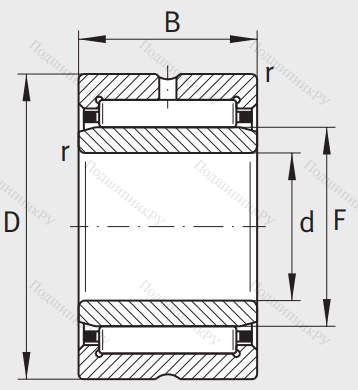 В конструкцию Игольчатый подшипник NKIS 20 входит массивная наружная обойма, обработанная машинным методом, со специальными бортами-ограничителями, предназначенными для фиксации передвижения шины относительно тела качения. Из-за отсутствия внутреннего кольца движение происходит на валу. Иголки размещены внутри стального сепаратора.