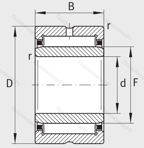 В конструкцию Игольчатый подшипник NKIS 20 входит массивная наружная обойма, обработанная машинным методом, со специальными бортами-ограничителями, предназначенными для фиксации передвижения шины относительно тела качения. Из-за отсутствия внутреннего кольца движение происходит на валу. Иголки размещены внутри стального сепаратора.