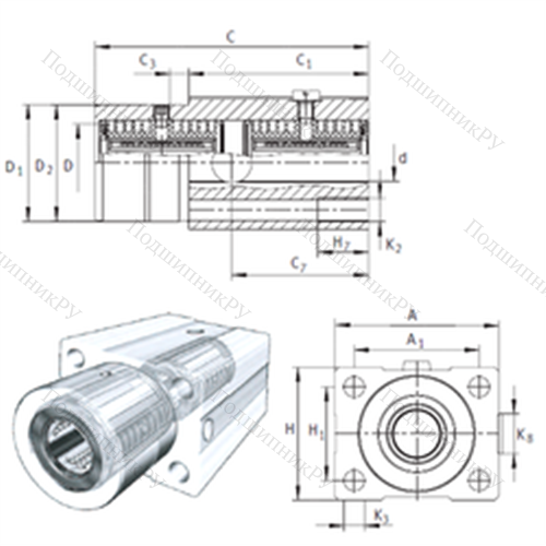 Подшипник шариковый линейный KTFS 16-PP-AS