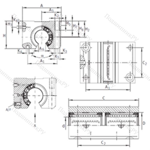 Подшипник шариковый линейный KTNOS 16 C-PP-AS