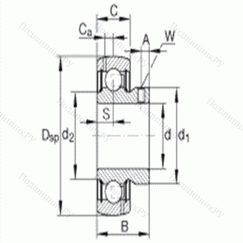 сферическое наружное кольцо, фиксация резьбовыми штифтами, двусторонние P-уплотнения по ABMA 15 - 1991, размеры в дюймах