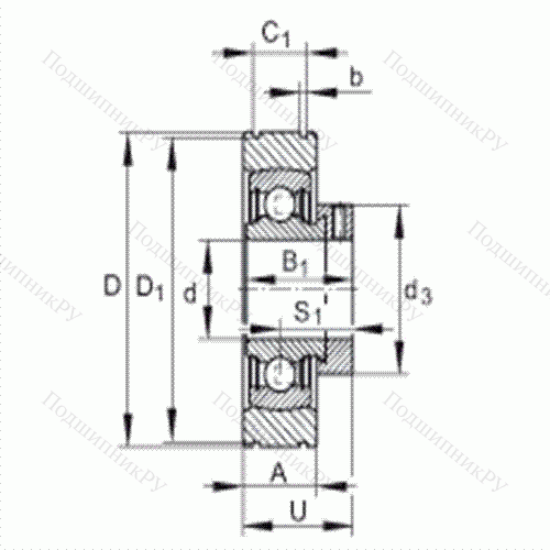 цилиндрическое наружное кольцо, с установочным стальным кольцом, фиксация эксцентриковым закрепительным кольцом, двусторонние P-уплотнения