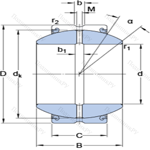 Радиальные сферические подшипники скольжения с контактными поверхностями сталь/сталь, требующие техобслуживания GEZH 308 ES-2LS