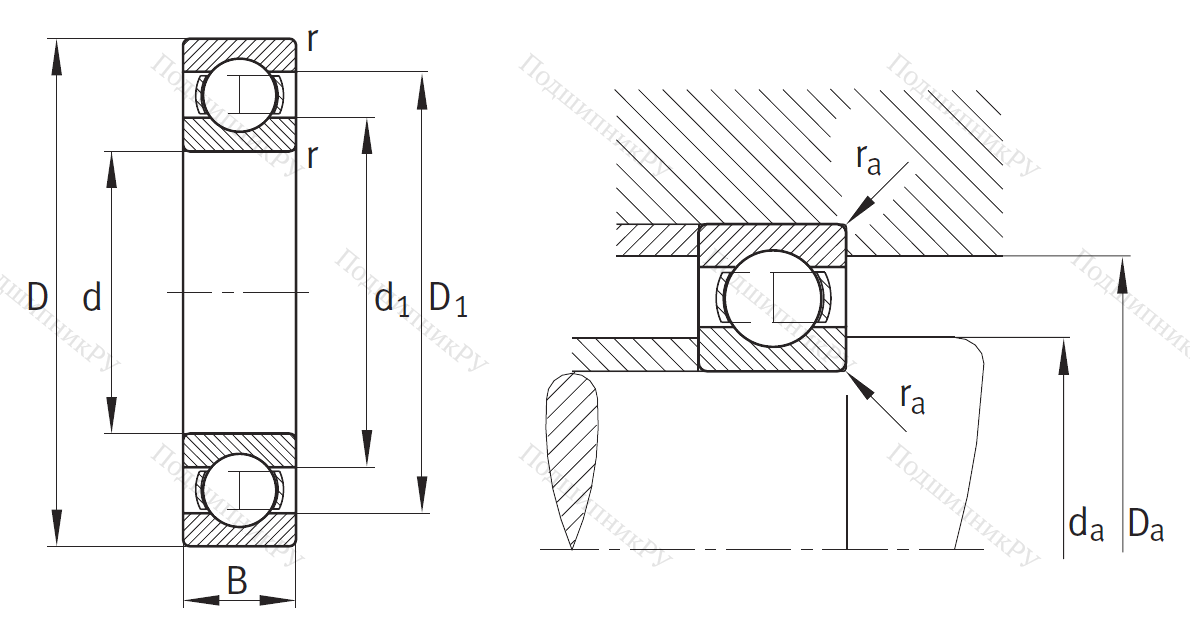 Однорядный шариковый подшипник 61824 Y (6824 M)
