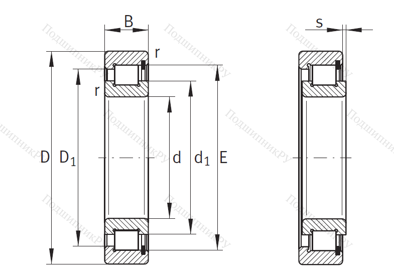 Комплектуется обоймами разного исполнения. Вариант: наружное кольцо с парой бортов, внутреннее, с одним; внешнее кольцо без бортов, внутреннее, с двумя; наружная обойма с двумя бортами, внутренняя, без бортов; другая конфигурация.