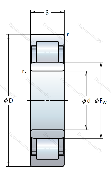 Роликовый цилиндрический подшипник NU 2313 W, это разновидность однорядного роликоподшипника в метрическом исполнении.