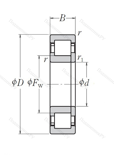 Роликовый цилиндрический подшипник NUP 216 W относится к группе однорядных цилиндрических роликоподшипников. Конструктивно состоит из: