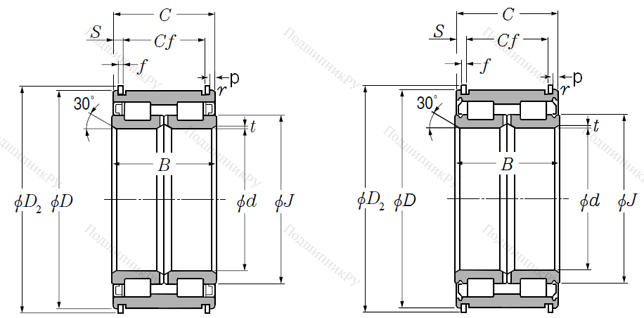 - плоская массивная наружная обойма цилиндрического типа, на которой выполнена проточка для установки стопорного кольца;
