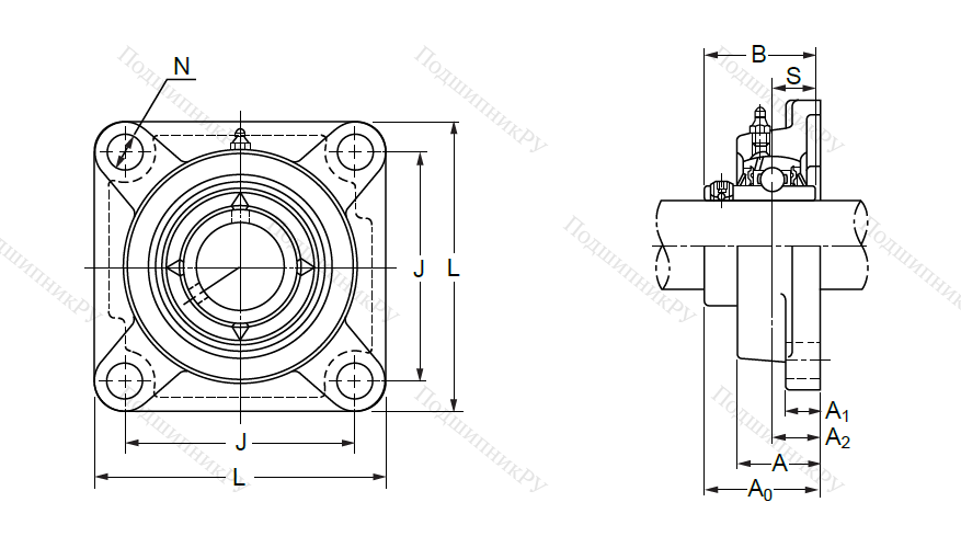 Внешнее кольцо имеет сферическую форму, поэтому установка изделия происходить при помощи специальных посадочных элементов. Таким образом, деталь может менять свое положение в пространстве относительно стального или чугунного корпуса, что дает возможность компенсировать несоосность.