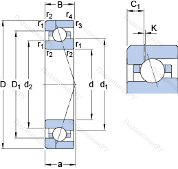 | Номинальная динамическая грузоподъёмность | C | 24.7 | kN | |