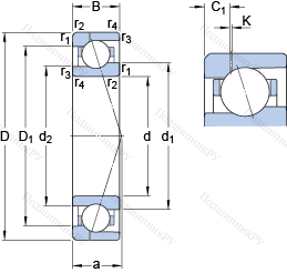 | Номинальная динамическая грузоподъёмность | C | 37.7 | kN | |