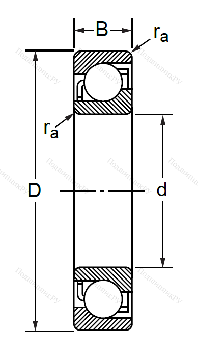 Из-за увеличенного угла контакта (α=36°) максимальная скорость вращения ниже, чем у изделий 36-й и 46-й серий. Но при этом подшипник выдерживает повышенные осевые нагрузки, до 200% от неиспользованной допустимой радиальной.
