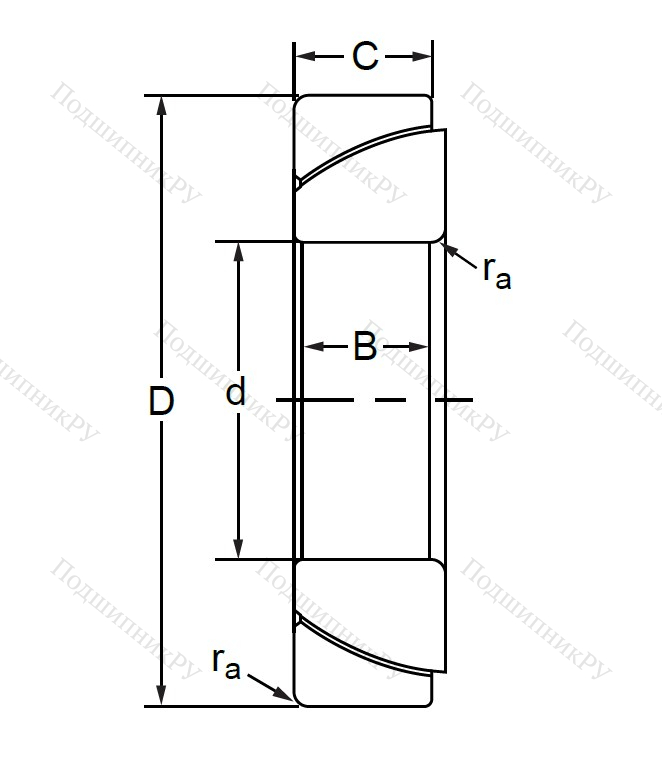 Закажите онлайн Шарнирный подшипник GAC 80 F весом от 0гр. до 50гр. с внутреним диаметром от d - 80мм до 150мм и наружным от D - 125мм до 225мм сегодня!